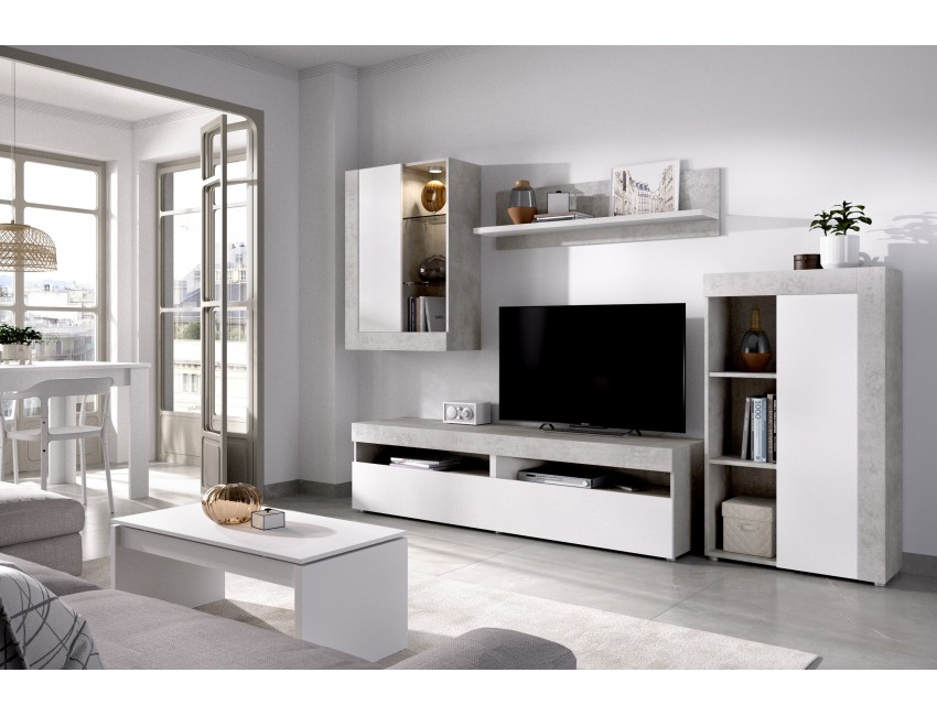 Parete attrezzata porta Tv 254 cm Miranda Bianco opaco e cemento