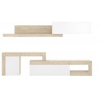 Parete attrezzata porta Tv 300 cm Hope Bianco lucido e Rovere Naturale