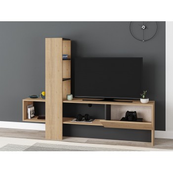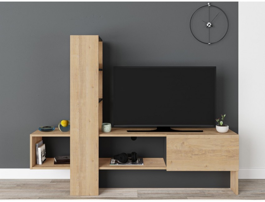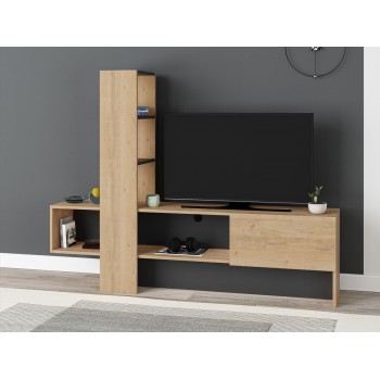Parete attrezzata porta tv 180 cm Asia Rovere chiaro e Grigio antracite