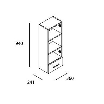Armadio pensile sospeso con 1 anta, 1 cassetto e maniglie.
