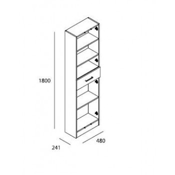 Mobile a colonna da bagno moderno con 4 ante, 1 cassetto e maniglie.