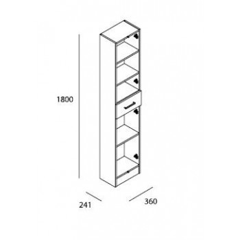Mobile a colonna da bagno moderno con 2 ante, 1 cassetto e maniglie.