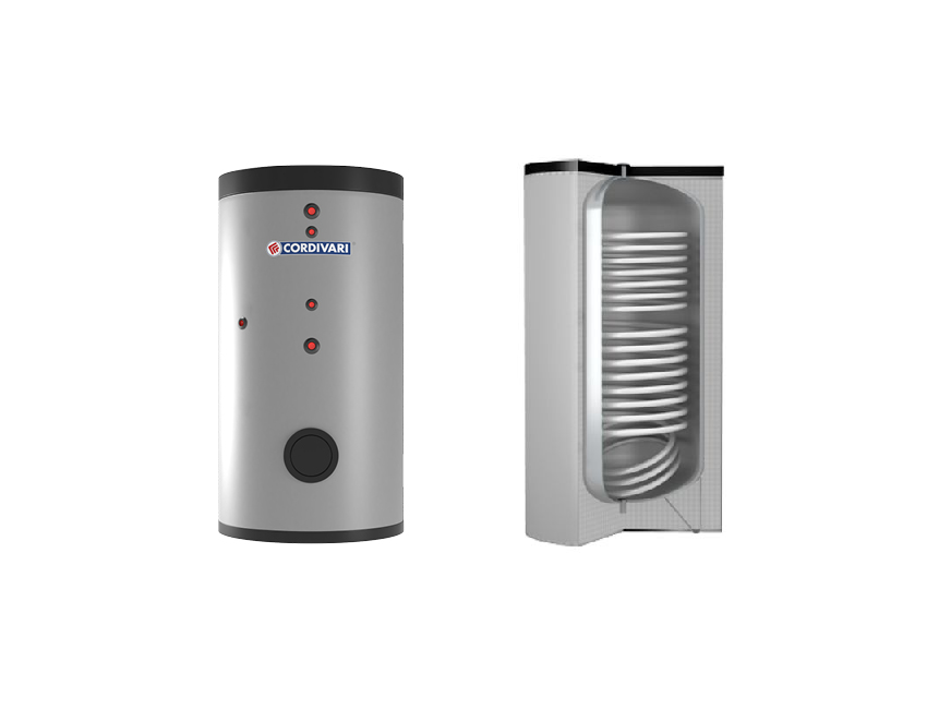 Produzione ed accumulo di acqua calda sanitaria (ACS). Tutti i collegamenti idraulici sul retro, le connessioni frontali e la flangia sono allineati per un’installazione semplice e veloce.
