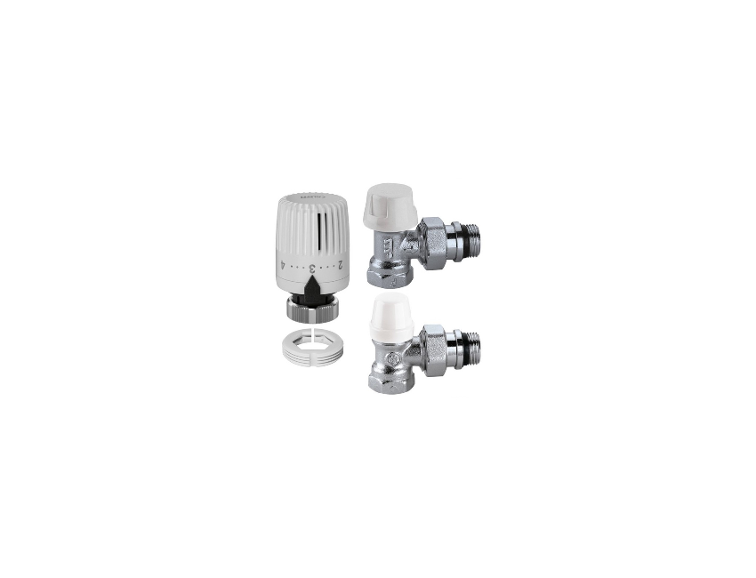 2.Valvola termostatica a squadra adatta all'installazione di teste termostatiche o attuatori elettrotermici. Finitura: cromo. Con preimpostazione. Collegamento all'impianto con filettatura interna. pressione di esercizio: 10 bar. Campo di temperatura di esercizio: 5÷100°C.