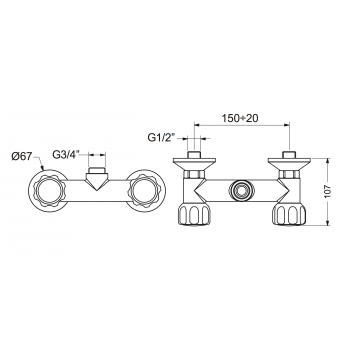 Idral miscelatore monocomando a parete con maniglie 09450/DC