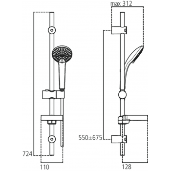 • Supporti a muro con interasse variabile da 675 a 550 mm