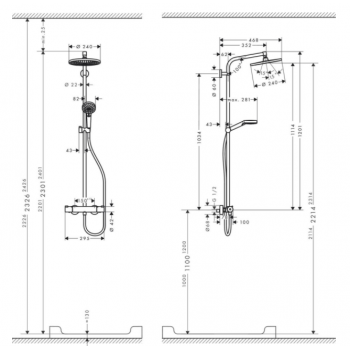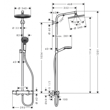 - Composto da: Soffione doccia, Doccetta, Termostatico doccia, Flessibile doccia, Cursore, Asta doccia