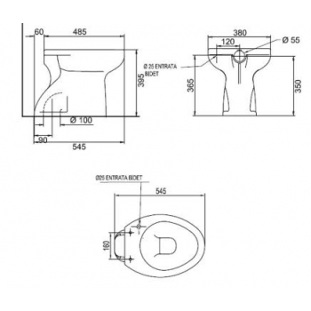 Wc-Bidet a pavimento 39.5x48.5 Sanit Sanitosco