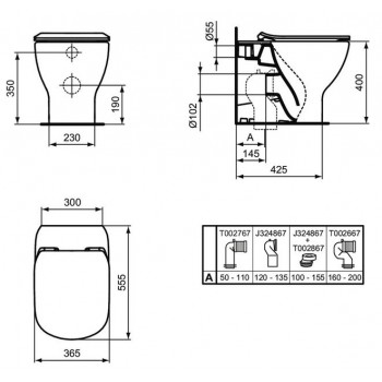 Vaso a pavimento AquaBlade universale filo parete Ideal Standard Tesi Bianco seta con sedile slim a chiusura rallentata