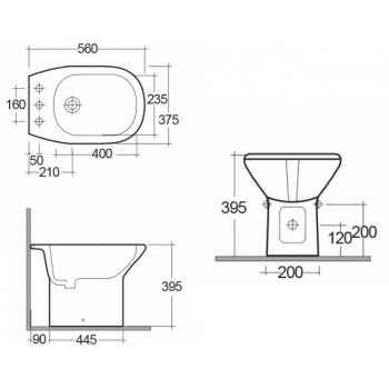 Bidet sospeso 37.5x56 cm in ceramica serie Orient Rak