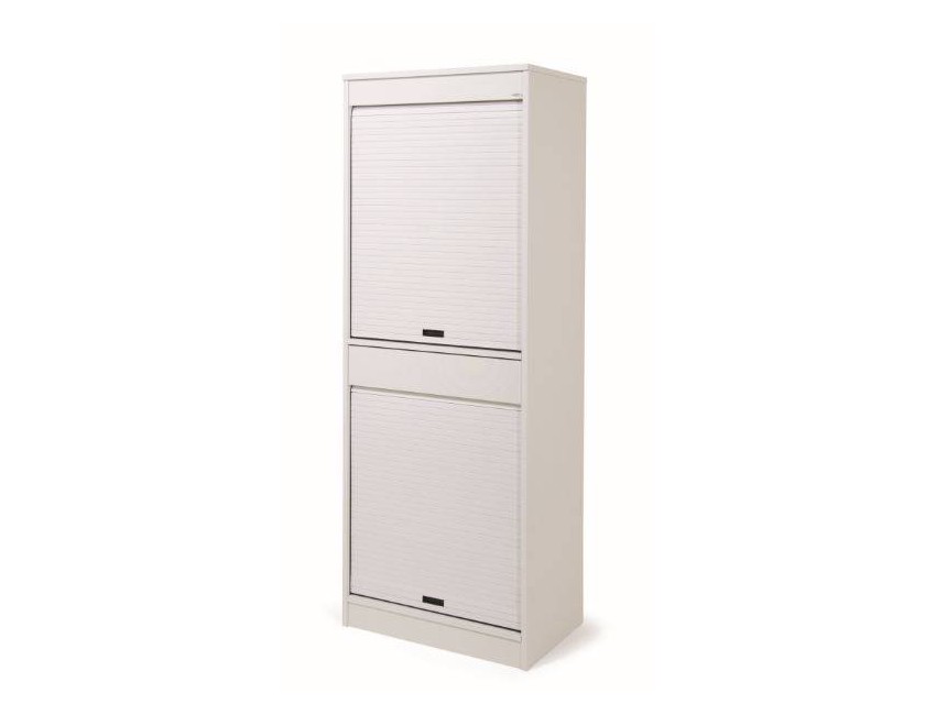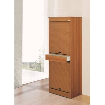 Armadio scarpiera in legno con apertura a serrandina e un cassetto centrale