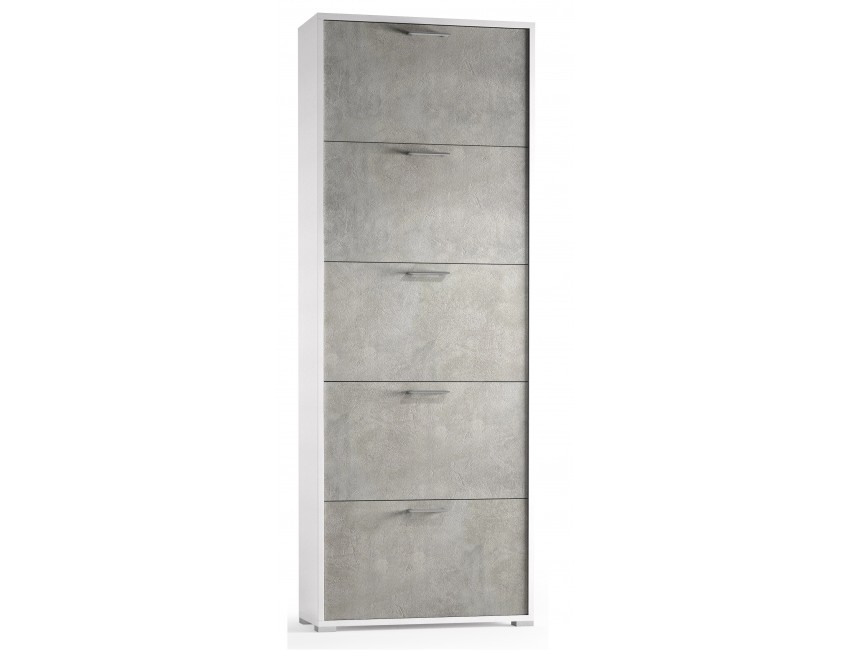Scarpiera 184 cm Bianco frassinato e Cemento con cinque ante a ribalta