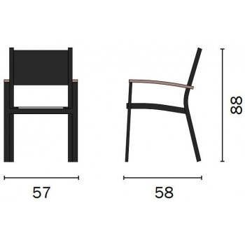 Sedia da giardino con struttura in alluminio verniciato a polvere di colore nero; seduta e schienale in tessuto Textilene imbottito nero