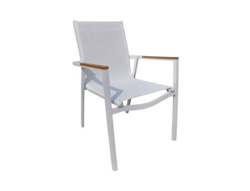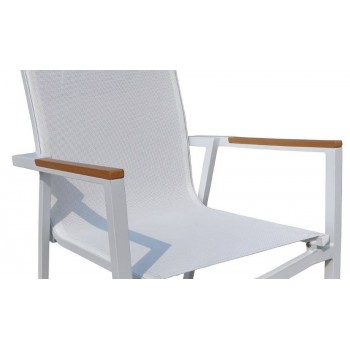 Sedia da giardino con struttura in alluminio verniciato a polvere di colore bianco; seduta e schienale in tessuto Textilene bianco