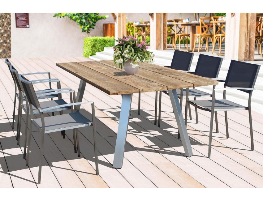 Set Tavolo da esterno 200x100 cm Malta in alluminio e legno teak con sei sedie