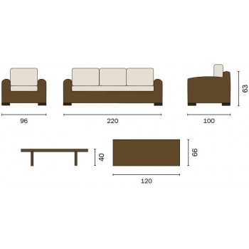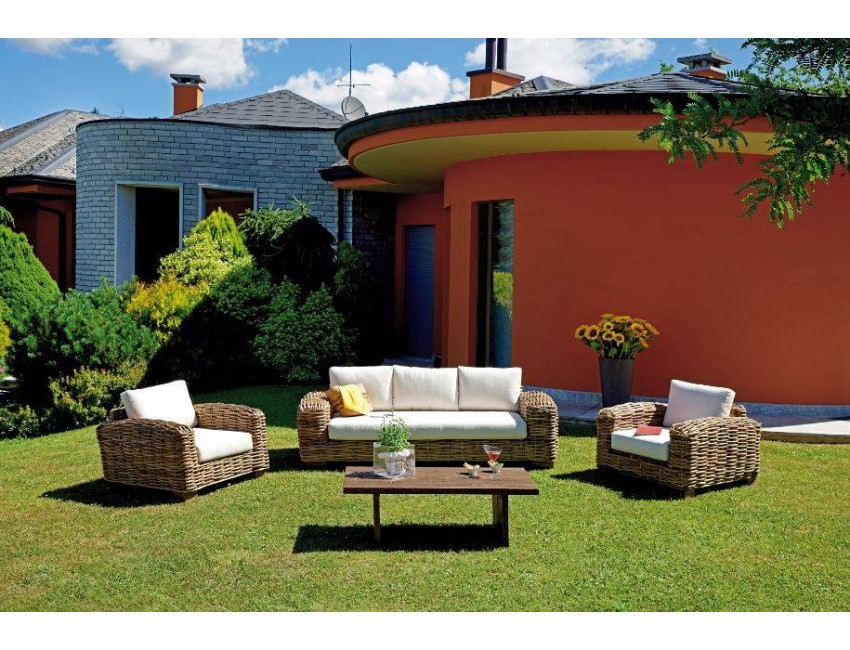 Set da giardino composto da un divano a 3 posti, 2 poltroncine e un tavolino