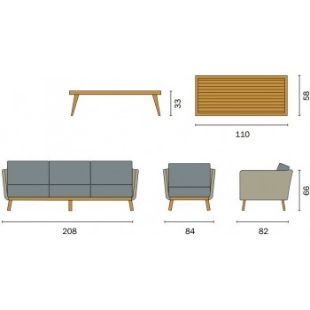 Divano: L 208 x P 82 x H 66 cm