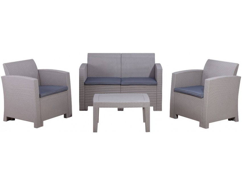 Set da giardino composto da un divano a 2 posti, 2 poltrone e un tavolino