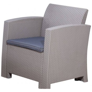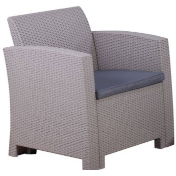 Tutti i componenti del set sono interamente realizzati in Polipropilene (PP), stampato effetto rattan colore grigio chiaro