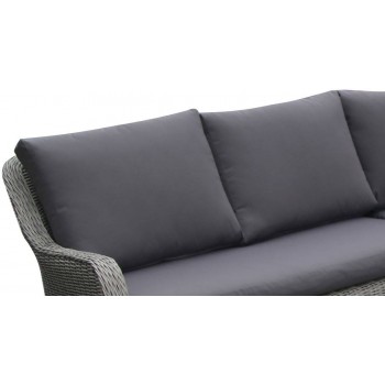 Il divano include i relativi cuscini per sedute e schienali in tessuto Poliestere 200 g/mq, colore grigio scuro