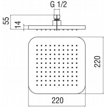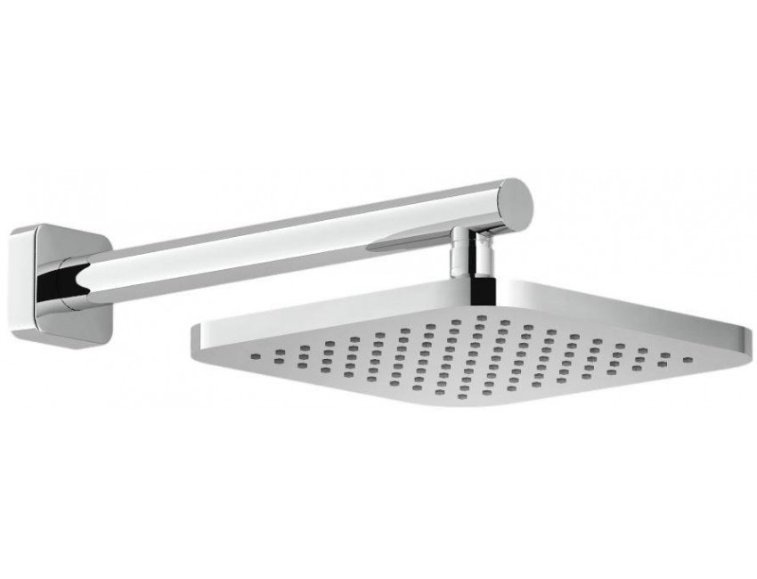 Soffione a snodo quadro con angoli arrotondati e getto a pioggia