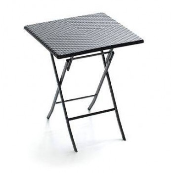 Tavolino da giardino quadrato e pieghevole con struttura in acciaio verniciato a polvere e piano d’appoggio in polyrattan o HDPE (Polietilene Alta Densità), sottoposto a uno speciale trattamento UV.