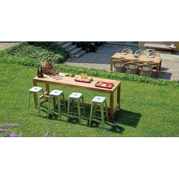Tavolo bancone da giardino rettangolare interamente realizzato in legno Teak riciclato