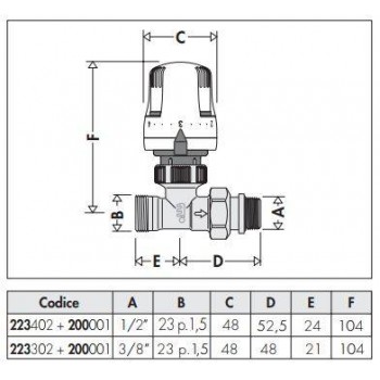 L’omologazione EN 215 é valida per l’accoppiamento dei comandi termostatici codice 200000 e serie 201, 199 con i corpi valvola serie 220, 221, 222, 223, 224, 225, 226 e 227.