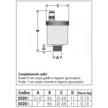 Caleffi valvola automatica sfogo aria 5020 Minical