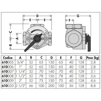 Caleffi valvola miscelatrice 3 vie filettata 610